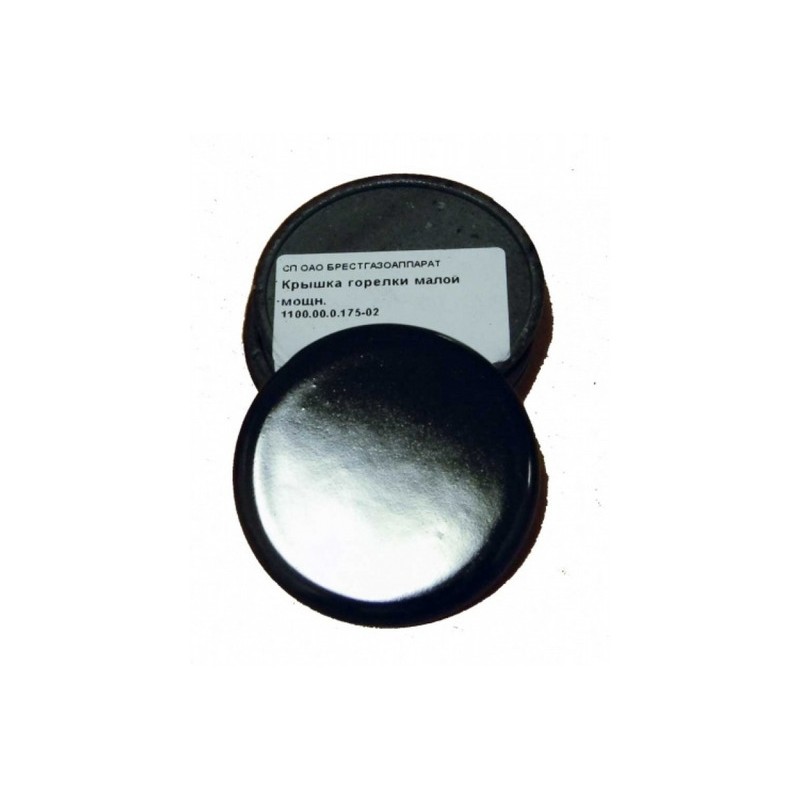 - Крышка горелки малой мощности для газовой плиты представляет собой изделие круглой формы с ровной поверхностью черного цвета. Ей накрывается горелка.